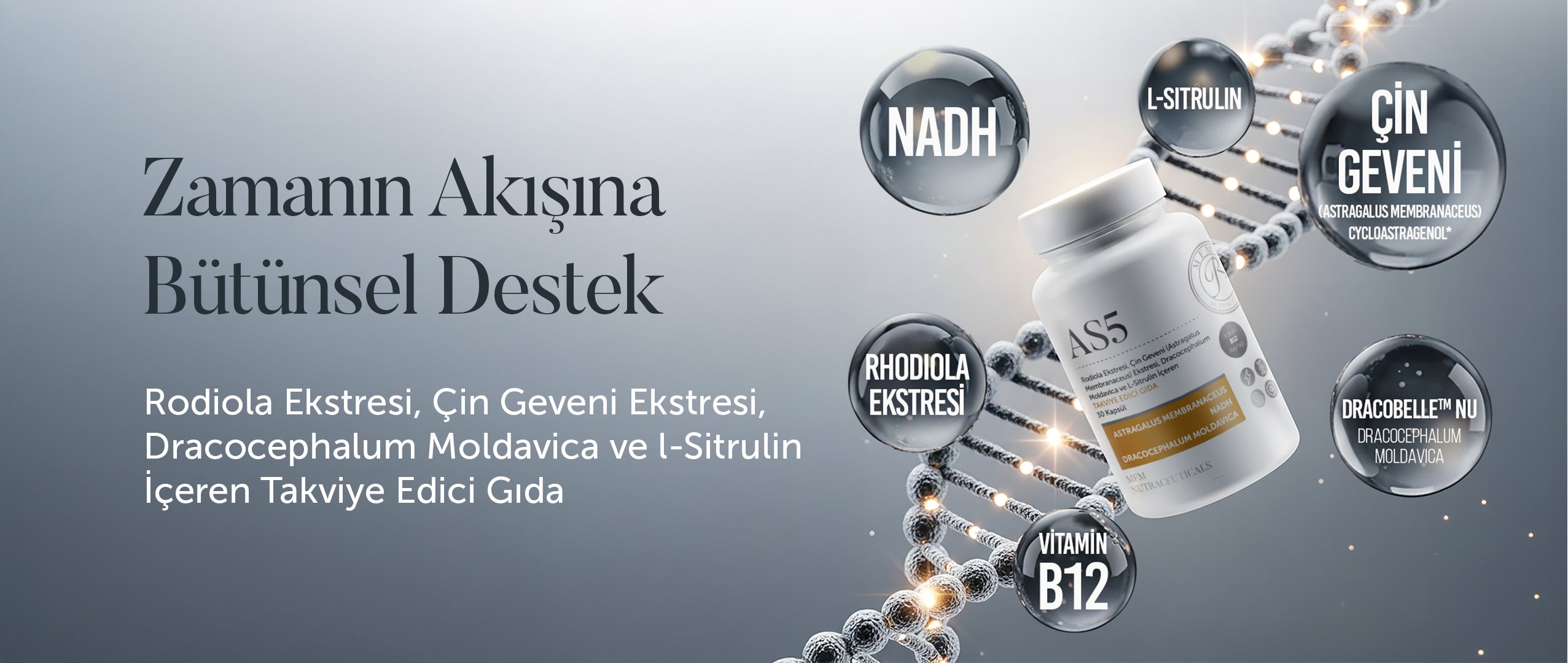 MFM AS5 Rodiola, Çin Geveni (Astragalus Membranaceus), Drococephalum Moldavica, NADH ve L-Sitrulin İçeren Takviye Edici Gıda - 30 Bitkisel Kapsül