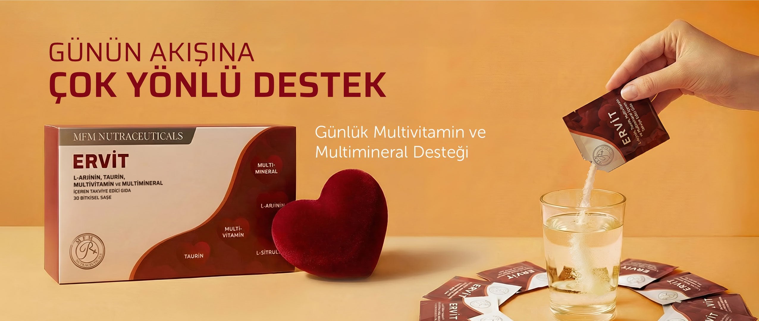 MFM Ervit L-Arjinin, Taurin, Multivitamin ve Multimineral İçeren Takviye Edici Gıda (L-Arjinin, L-Sitrulin, Magnezyum, Taurin) - 30 Şase