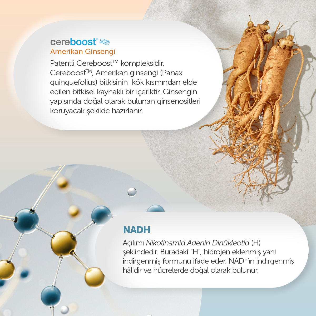 MFM Z.K 200 Amerikan Ginsengi, NADH, DHA, Vitamin ve Çinko İçeren Takviye Edici Gıda (Cereboost, NADH, DHA) - 30 Kapsül